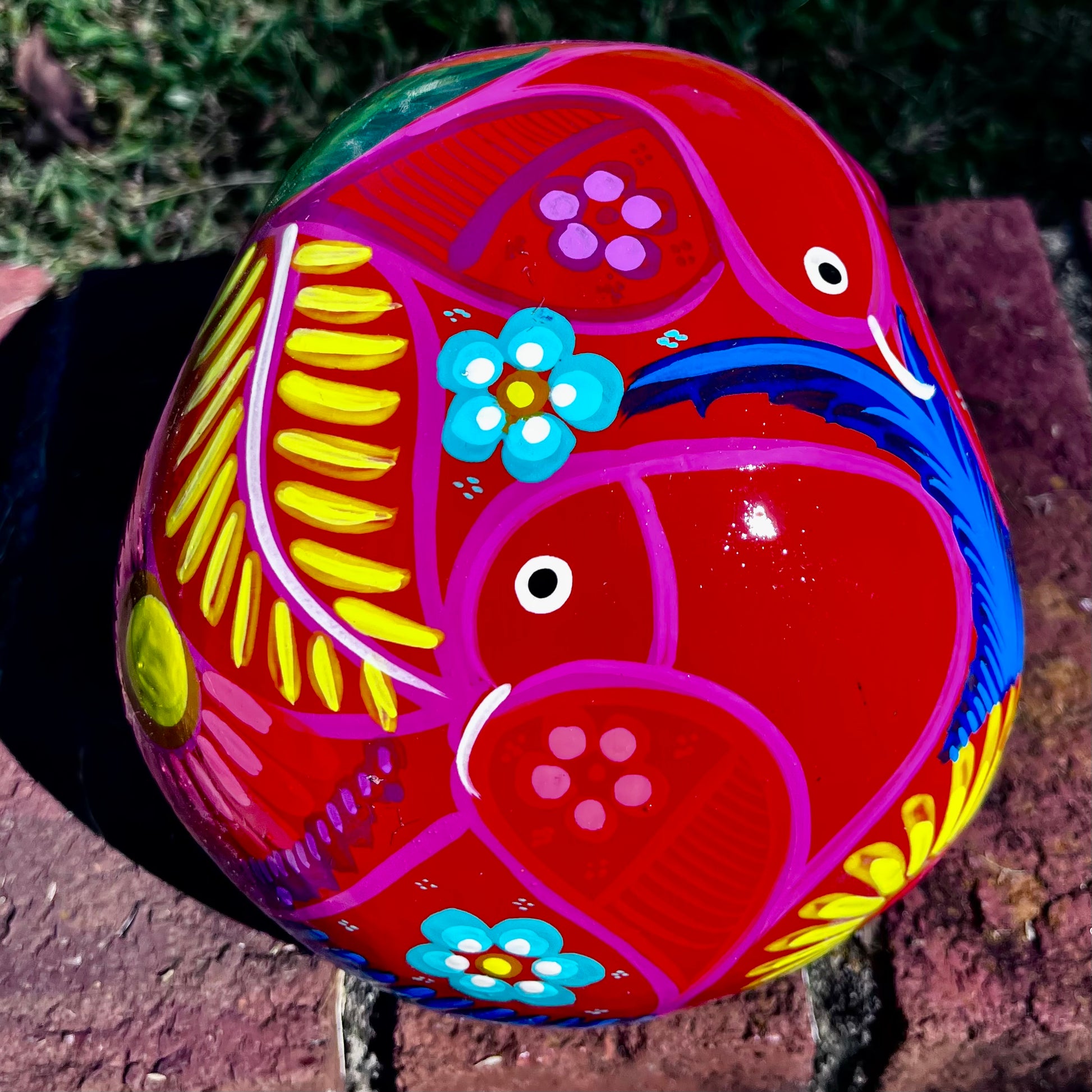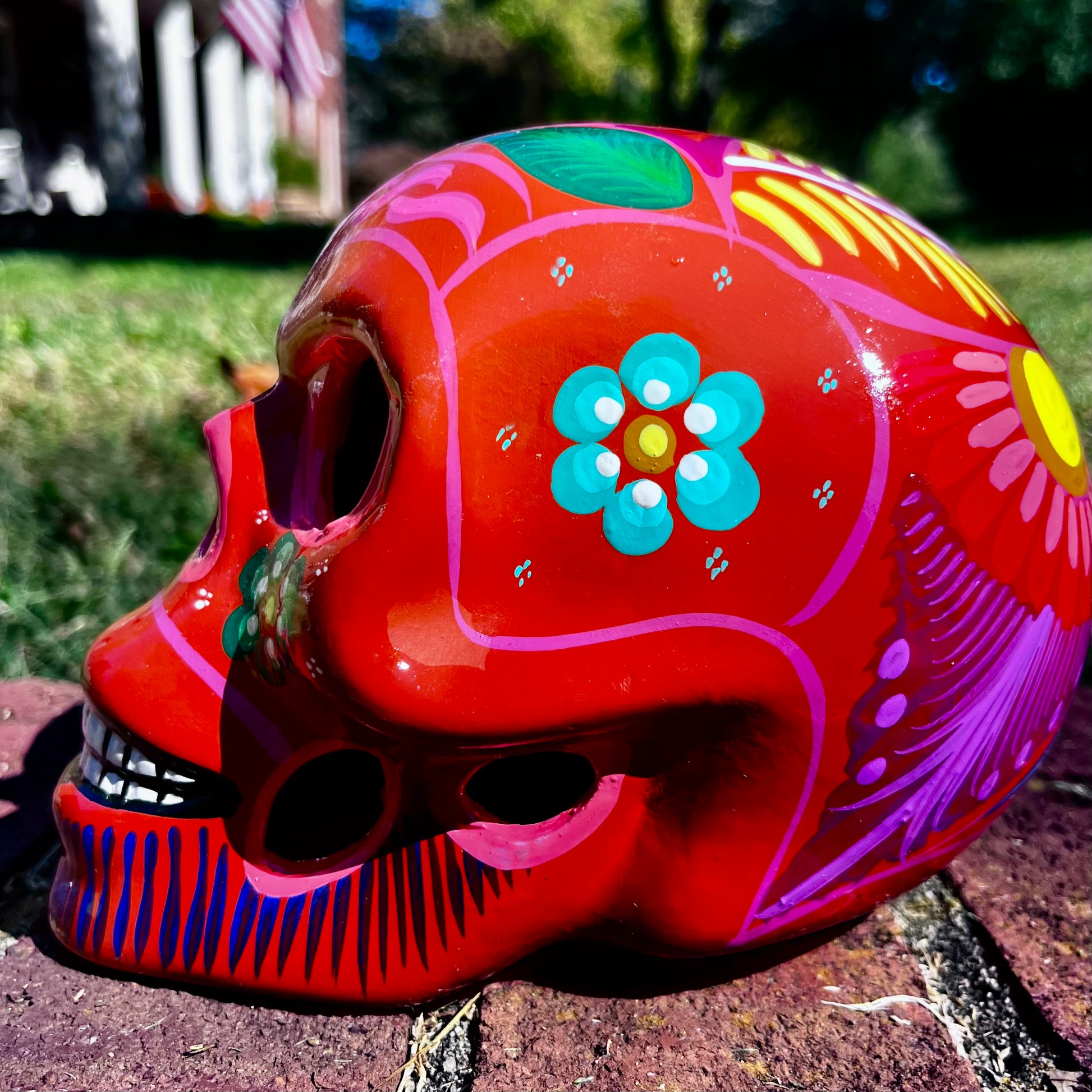 Spice up your decor with this authentic hand painted Mexican sugar skull. Each one is unique and truly one of a kind. This sugar skull will add a colorful and cheerful touch to any space. Perfect for celebrating Dia de los Muertos, Day of the dead.
