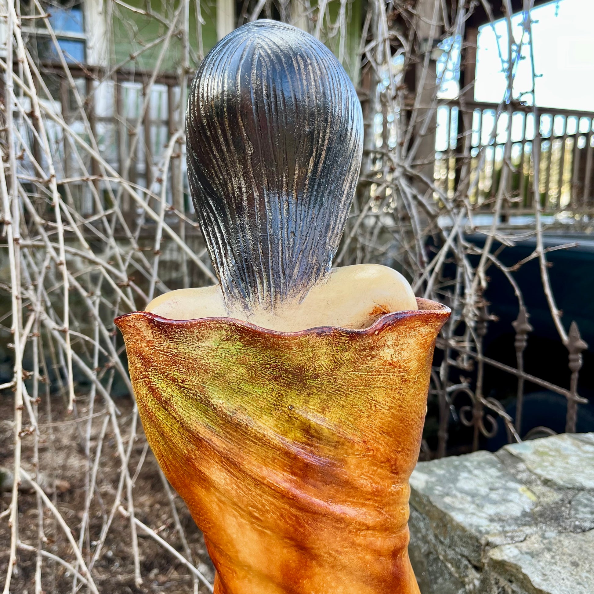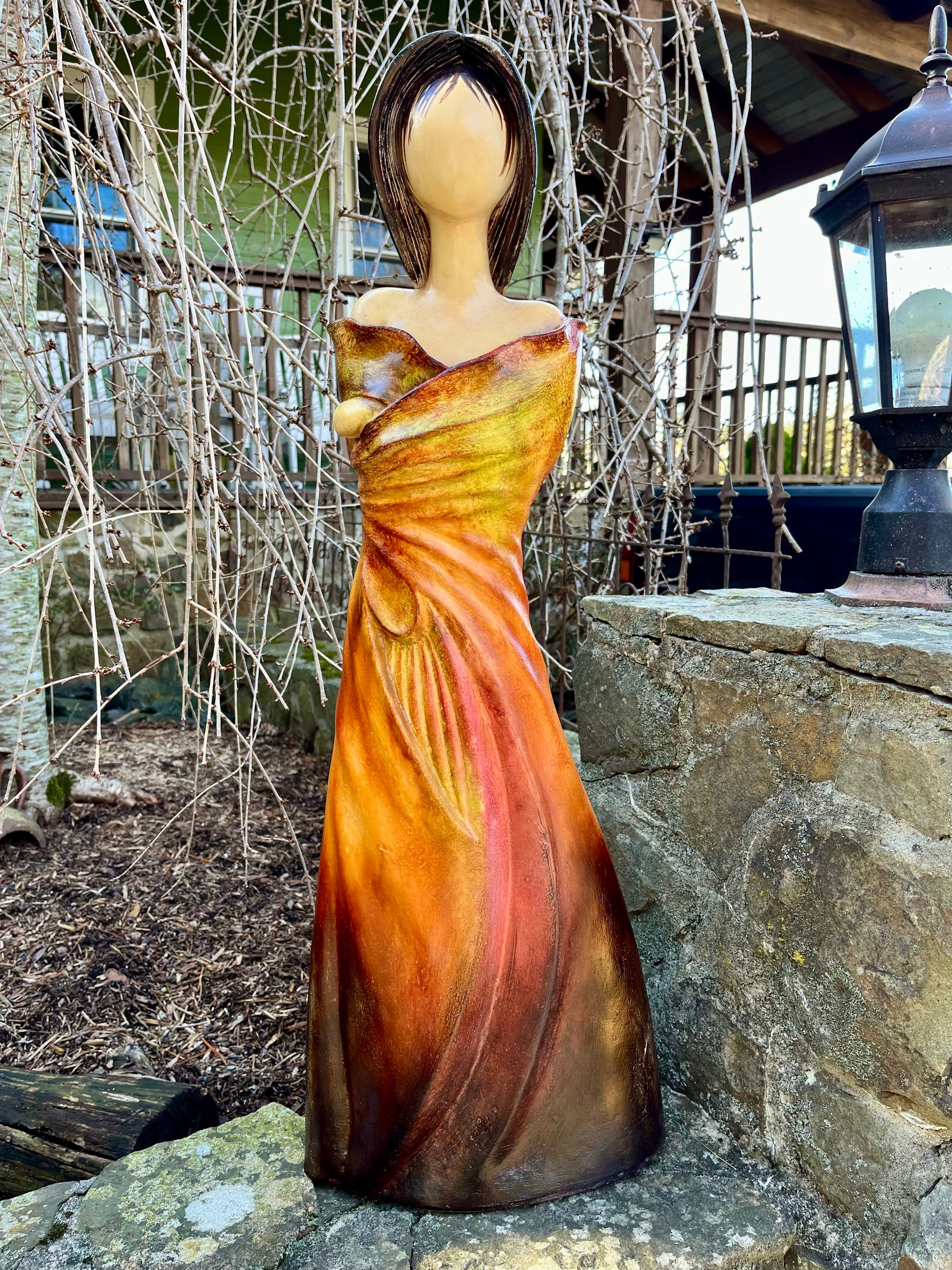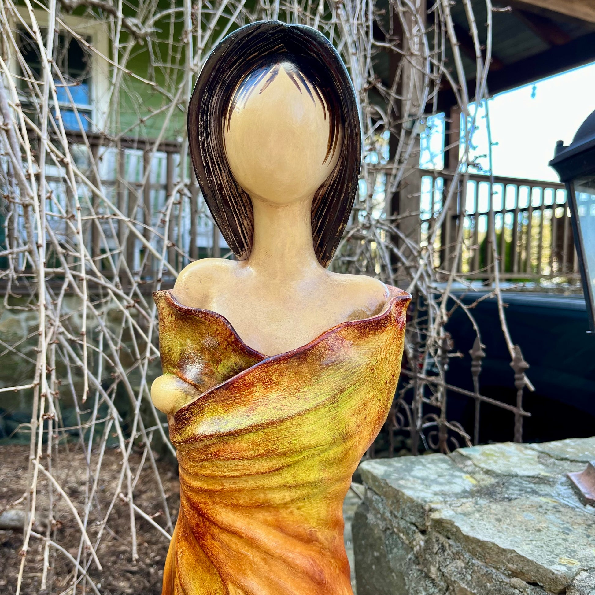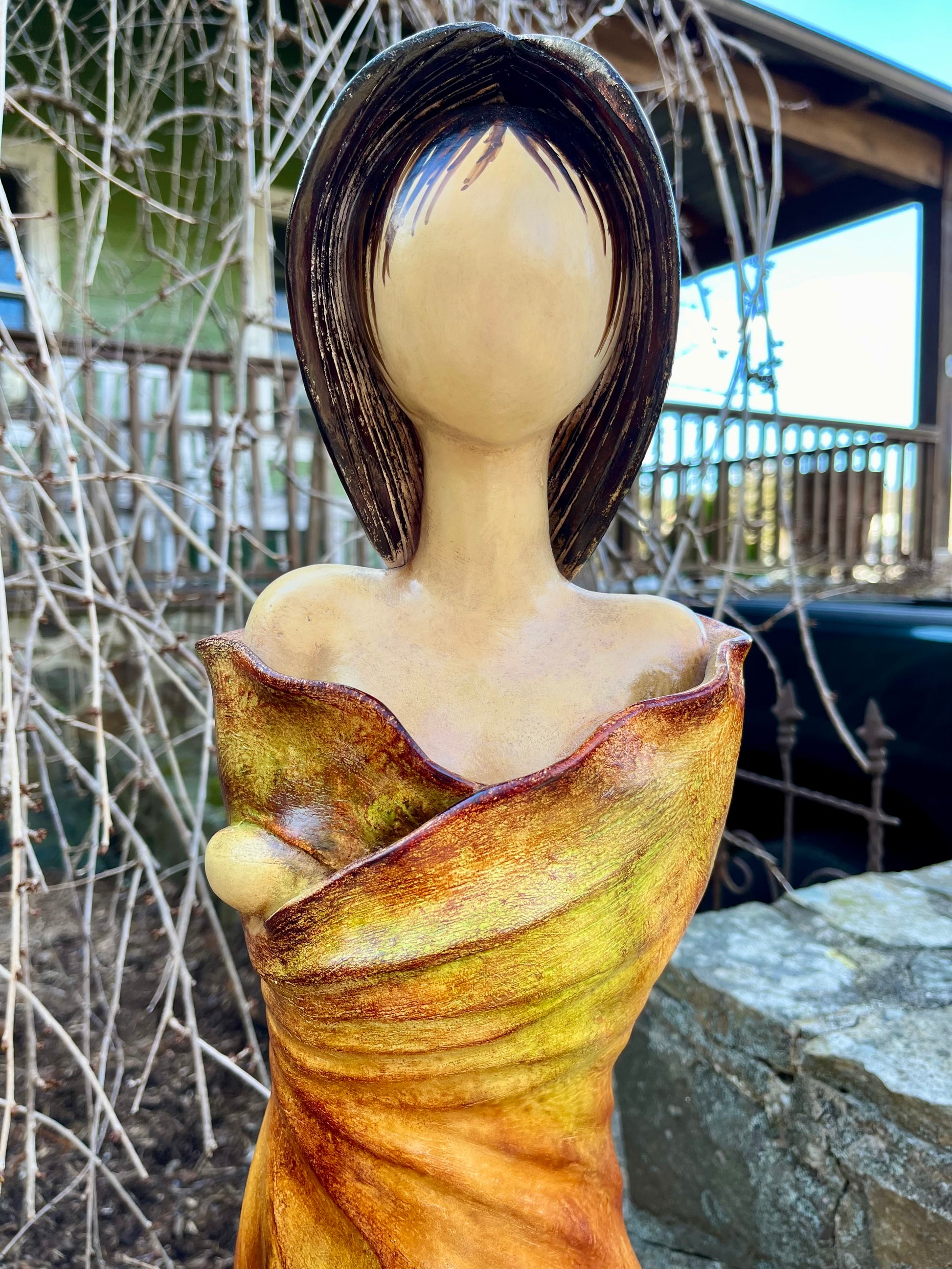 Another beautiful piece by Loretta! Artesian Loretta Bertoli's female sculptures are gorgeous. They are stunning works of art to be treasured and enjoyed. Lovely Nicole is a favorite! She is very serene and elegant. Nicole is sculpted out of clay and recommended for indoor use.