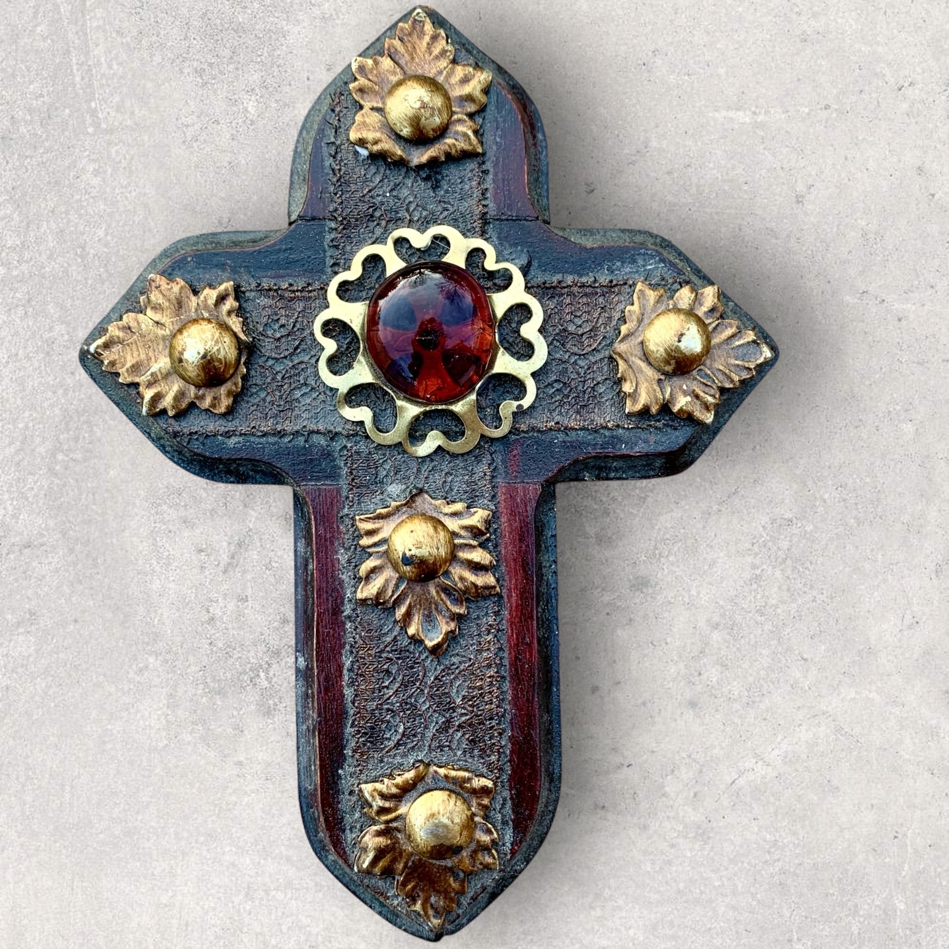 SHIPS FREE! Beautiful rustic wood crosses decorated with metal detail and a medallion center. Look at each point and notice the unique leaf ornamentation.