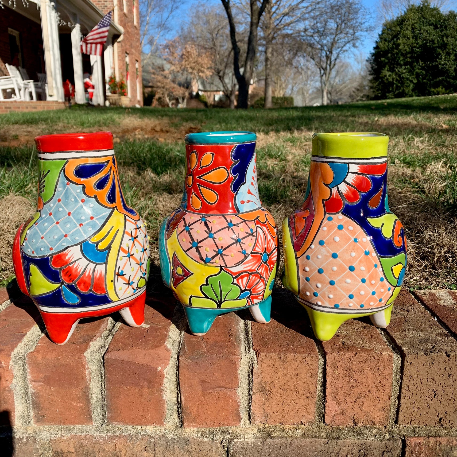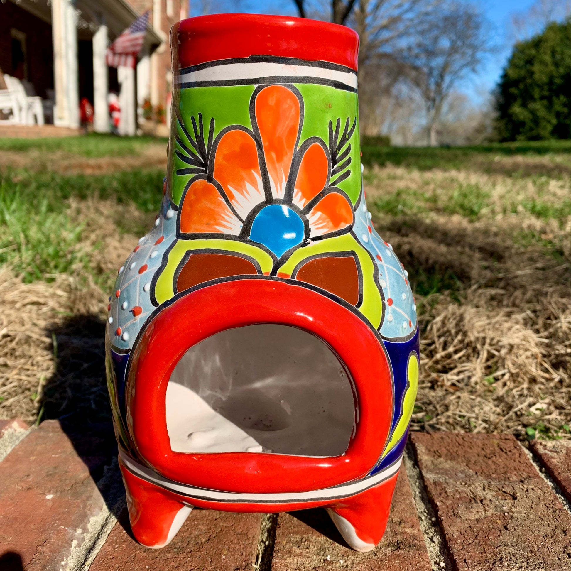 Perk up your patio with this charming Talavera Chiminea Candle Holder Chico! Each chiminea is hand painted with traditional, colorful Mexican designs. Our authentic candle holder will add a splash of color to your garden! Plus, this multi functional piece double as a planter with its convenient drain hole. Made in Dolores Hidalgo, Mexico.