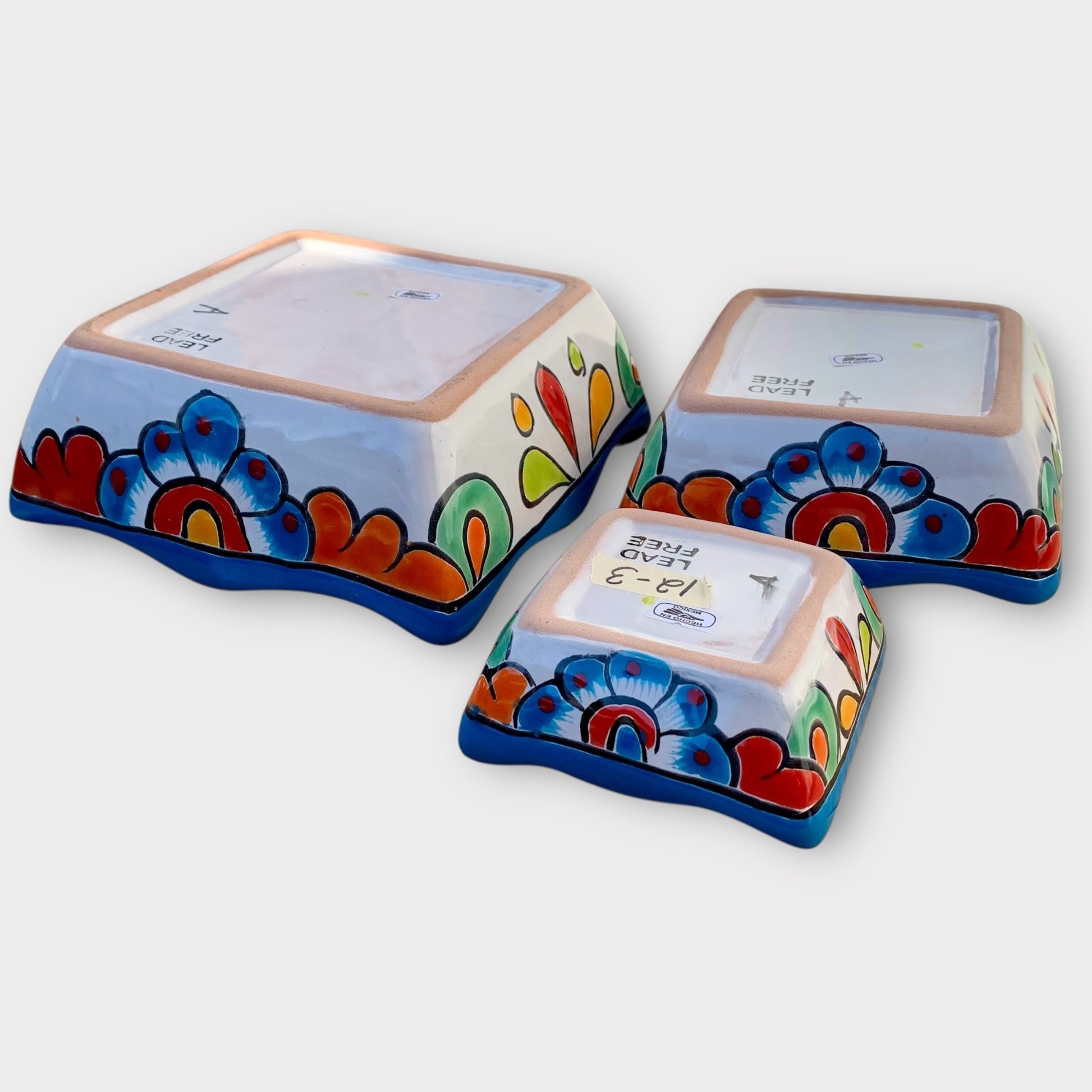 These Talavera nested serving bowls are great for serving all types of food. Use for salads, salsas, relishes and more! This set makes a thoughtful gift for housewarmings, engagements, weddings and more! They will be enjoyed for years! A work of art!