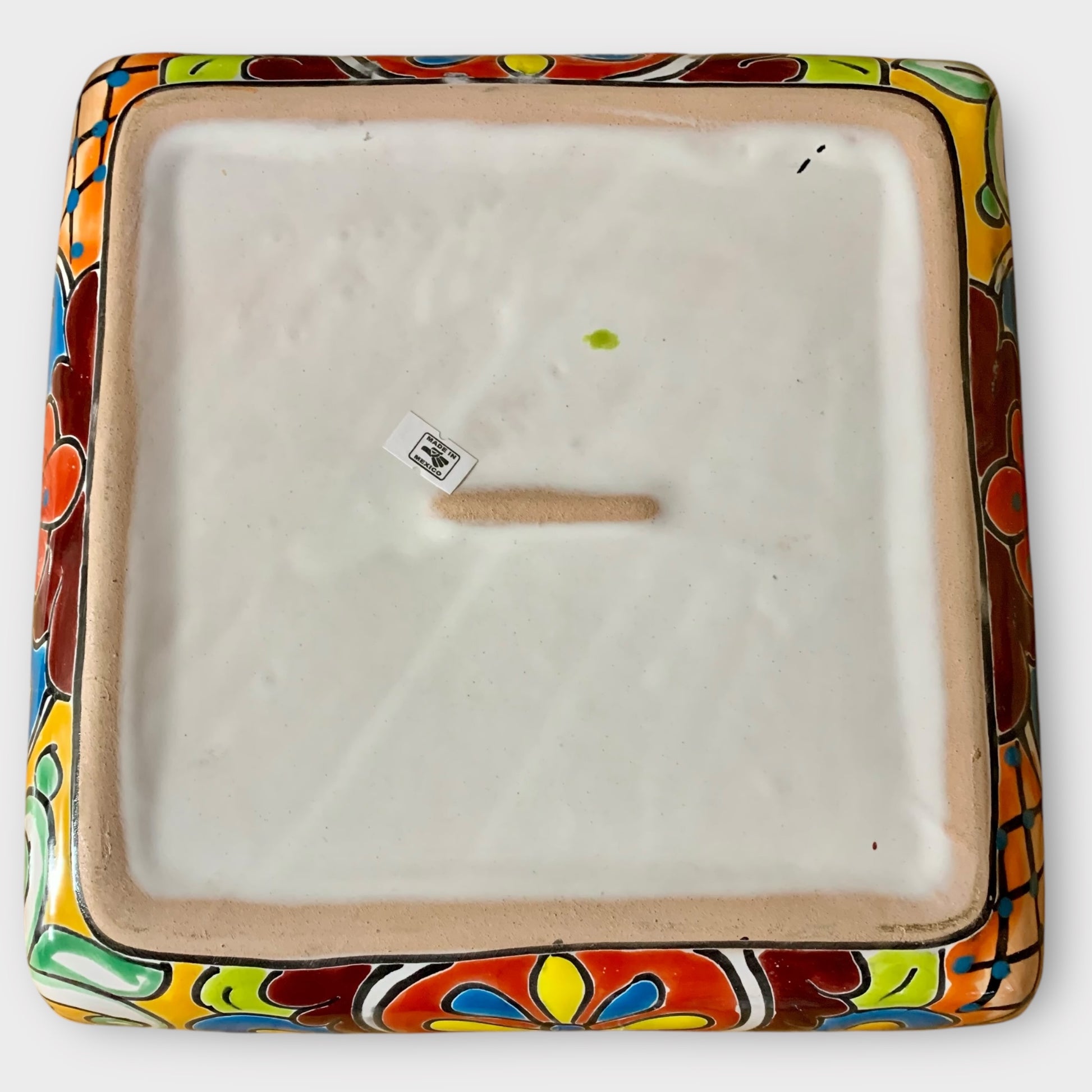 This Talavera square serving dish is great for taco condiments, salsas, relishes and more! Remove the sectional dishes and you have a beautiful serving platter! This tray is lead free and dishwasher safe, although hand washing is preferable. A work of art! Handcrafted in Delores Hildago, Mexico.