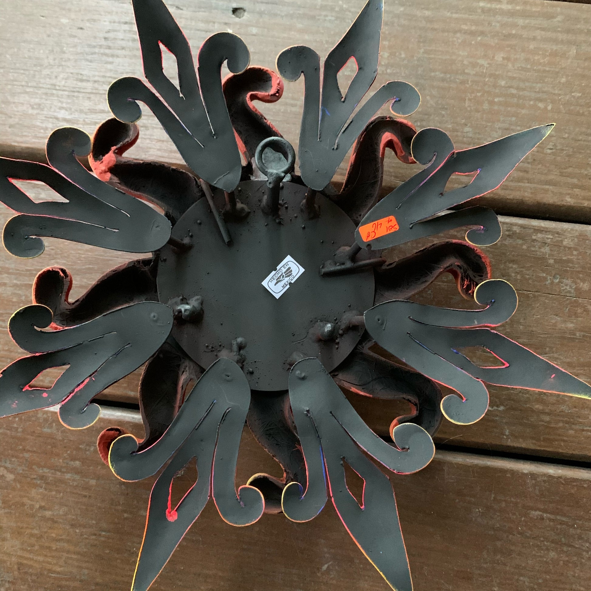 Our Bright Floral Sun and Moon are looking pretty cozy and happy. What a unique and colorful pair! The flowers offer a sign of spring and renewal. This unique sun and moon combination is hand crafted with painted metal rays and a fiberglass face . May be enjoyed indoors and outdoors. Has a loop on back for easy hanging. This piece is light weight and easy to hang. Made in Tonala, Jalisco, Mexico